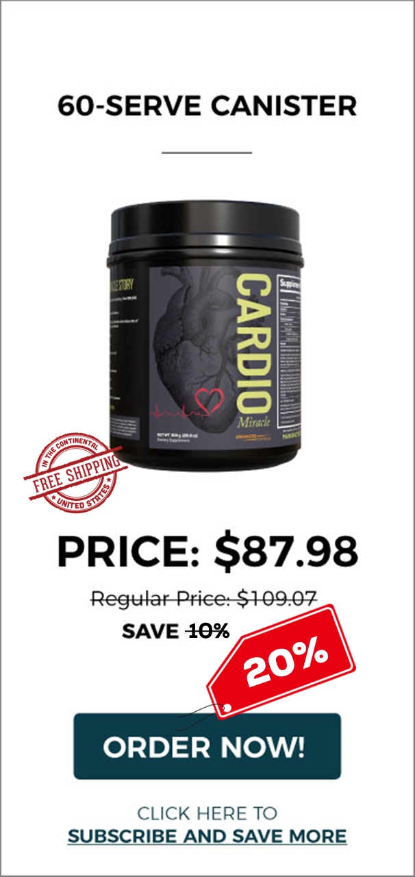 Cardio Miracle is a full-spectrum Nitric Oxide supplement of the finest natural and organic ingredients that delivers 12+ hours of Nitric Oxide-triggering action so your body produces its optimal Nitric Oxide output.